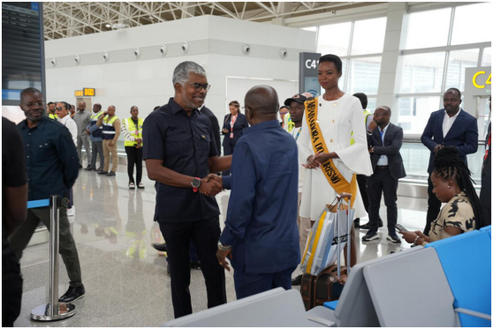 安哥拉交通部部长里卡多·德阿布雷乌问候登机乘客
