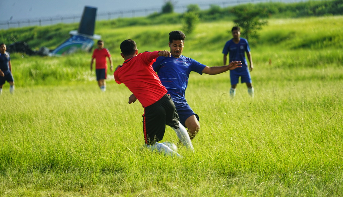 On July 4th, the football players of AVIC-KDN project department and the representative team from the Tribhuvan International Airport (TIA) gathered on the football field, accompanied by the booming take-off and landing sound of aircrafts. The two team staged a wonderful and fierce football match for the enterprises of both sides in the airport.