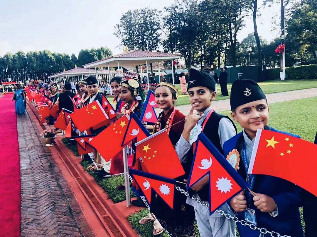 At about 4:55 PM local time on October 12, President Xi Jinping's special plane arrived at Kathmandu Tribhuvan International Airport. AVIC-KDN organized more than 200 Chinese, nepalese and property owners to welcome President Xi Jinping and his delegation to Nepal by waving the national flags of China and Nepal in accordance with the established welcome formation on both sides of the only way for President xi jinping to pass by the airport, against the background of business banners.
