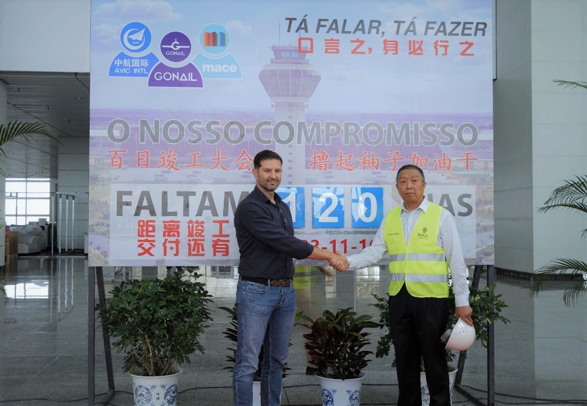 2023年7月10日,中航凯迪恩机场工程有限公司安哥拉罗安达新国际机场项目指挥部举办了内图博士国际机场百日竣工动员大会。安哥拉业主方GONAIL协调员José Paulo Nóbrega,监理方MACE总经理Bruno Silva,总包商项目指挥部指挥长、中航凯迪恩机场工程有限公司总经理程军,业主代表及参建各单位中、安员工约1000人参加了此次活动。