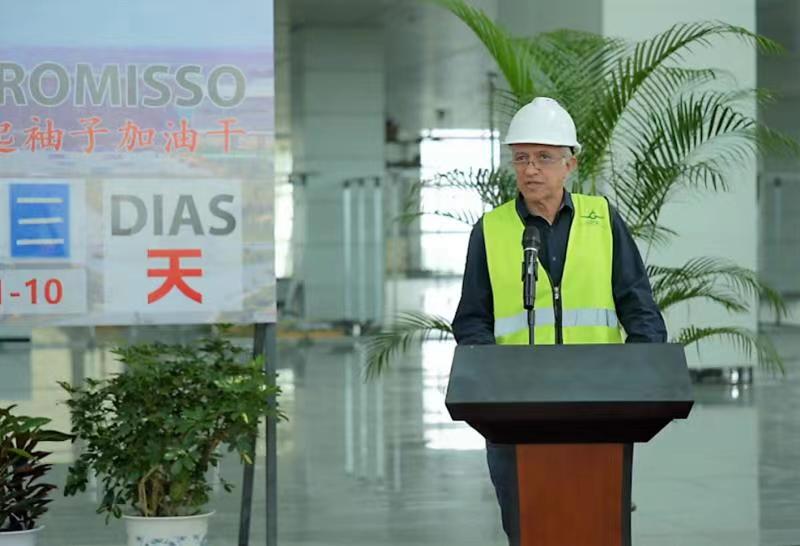 监理方MACE总经理Bruno Silva表示:今天是个标志性时刻,这个倒计时面板除了提醒我们工期,也是将我们的精力和力量汇聚到一起的纽带。完成这个共同的竣工目标,需要我们所有在场人员的共同努力。当然,今天成绩的取得也与那些已经离开人员的贡献密不可分,我们不能忘记。在此,我代表MACE表示,将全力以赴,配合现场所有人员完成工作,达到竣工的共同目标,交付内图博士国际机场投入使用。