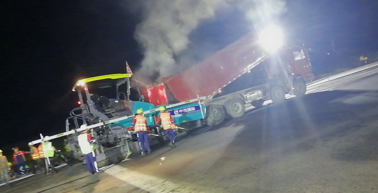 Four pavers were used for the pavement construction, closely followed by eight double-wheel rollers, and the runway pavement with a width of 45m was paved at a time, which greatly guarantees the pavement quality while reducing the number of construction joints.